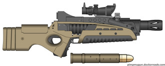 I don't know what you're capeable of in that program, but a LOT of edges need smoothing so they aren't so sharp. And the scope could use a block in the middle so it isn't just a solid tube. The trigger guard could be bigger, not a whole lot of room for your finger in it (height wise). The pistol grip could be wider too (front to back, not side to side) and the placement of the charging handle and mag release are rather far back. Mag releases are normally near the mag. And charging handles are normally in one of three places. 1: Right side of weapon-infront of ejection port. 2: Right side of weapon-right behind ejection port. or 3: Left side of weapon, on the handguard (way forward of the ejection port, up where your left hand will actually be.)