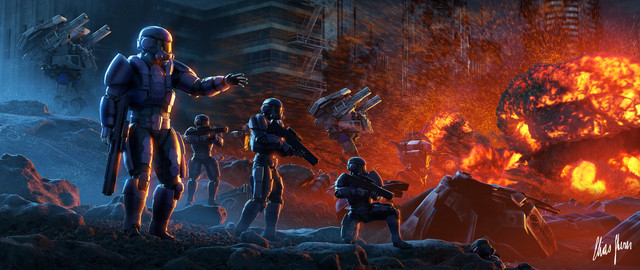 Commissioned piece I did for Project Nebula quite a while ago.This is meant to be collected ingame in form of 3 Wallpapers to make the entire picture and telling the story of this world.