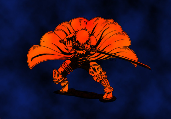 Weilding his crimson sword he has the potential to become an unstoppable force.