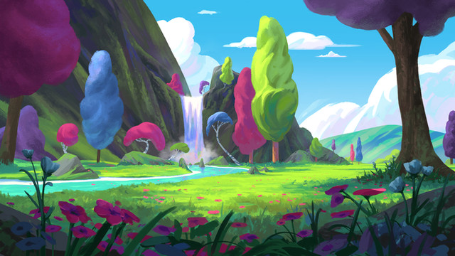 Great to see new updates from you. Love the colors as usual! Really like those clouds/trees shapes. I've finished a similar work myself recently in terms of incorporating those spiral shapes.