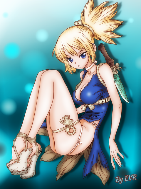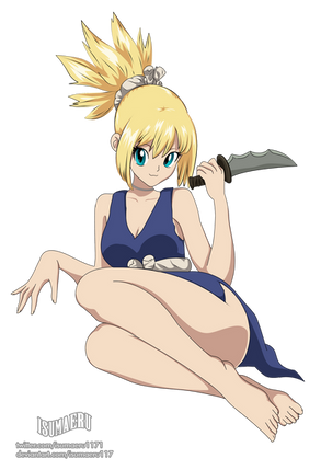 Kohaku from Dr. Stone. Experimenting with coloring all the lineart in the drawing, whereas before I leave the outline of the character in black. While not perfect, I'm happy with the result. And to anyone not familiar with the series, this is quite faithful to how she's drawn therein - flexibility and convenient leg included.My other Dr. Stone drawings: