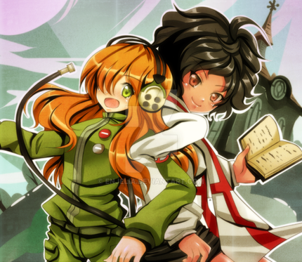 Between the characters' names, their fashion sense, their physical traits, and the overall setting, this reminds me very strongly of Rita Mordio from Tales of Vesperia.......
