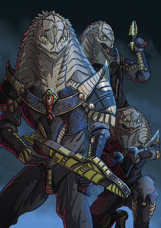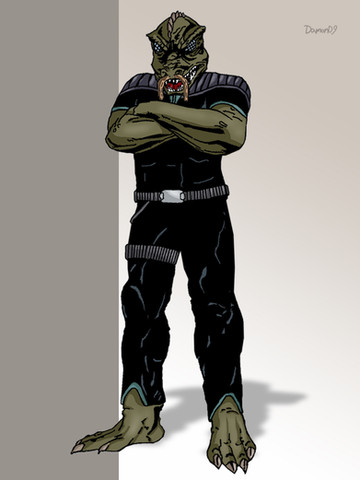 Nice Scarran inspiration; I can tell it's more drawn from the "underling" lizard-headed kinds, not the "ruling government" kinds that are basically Emperor Sidious-lookingΒ