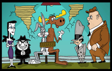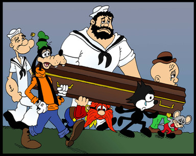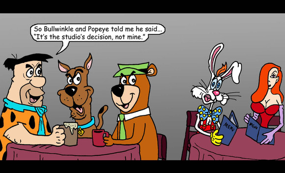 I also discovered some scenes left out of the final shooting. Including Acme's funeral. Foghorn was preaching, the toons were crying including Superman, Mighty Mouse, Popeye, Tom & Jerry. Then the big HARVEYtoons Jester pops out of the casket and they all bust up laughing and leave.