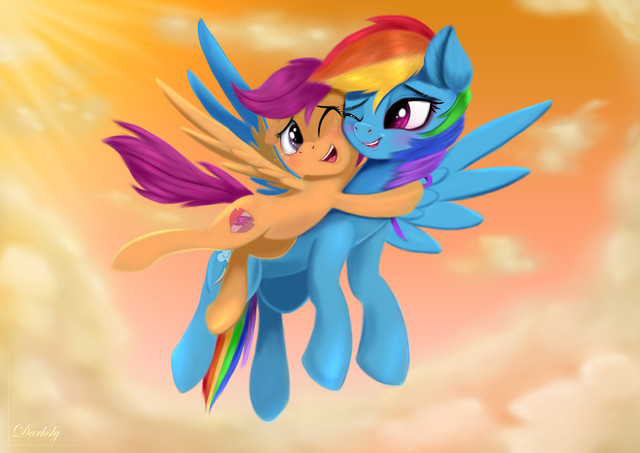 #cloud #color #cutiemark #dash #hug #mane #mlp #pony #purpleeyes #rainbow #rainbowdash #sky #tail #wings #scootaloo #fim #pegasus #my_little_pony