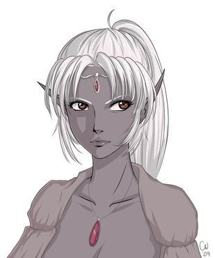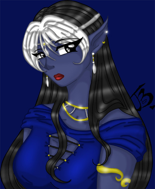Very nice. The best thing of this picture? It's a darksong who doesn't wear all black! I don't think I've ever seen that before. Very nice, though, I like it. ^_^