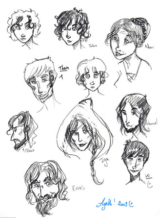 YUUSSS finally got round to doing this!!!Since people seemed to like the first sheet and i now know i don't have a totally screwed up mind drawing-characters-from-books-wise, i felt like drawing the characters from the second book Catching fire! >w< mostly because of finnick.... *ahem*