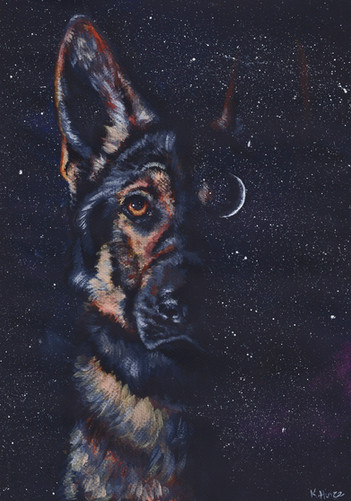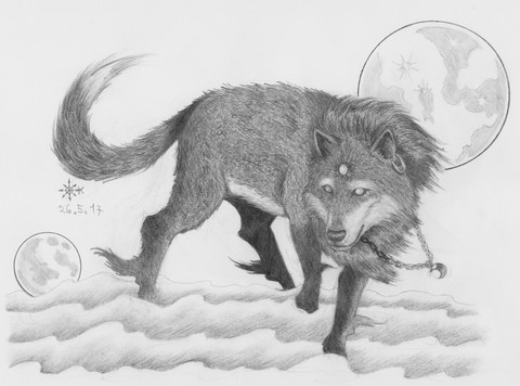 HeyFirst of all, this is the kiriban prize for Dark-Arctic-Fox . It is their character Dark Arctic Fox. I wanted to show all his faces you described to me in this picture, so the kind, dreamy and strong face as he is sitting there proudly, the loneliness and the danger in the pictures in the stars and since he likes the moon, amber and roses, I added those as well.