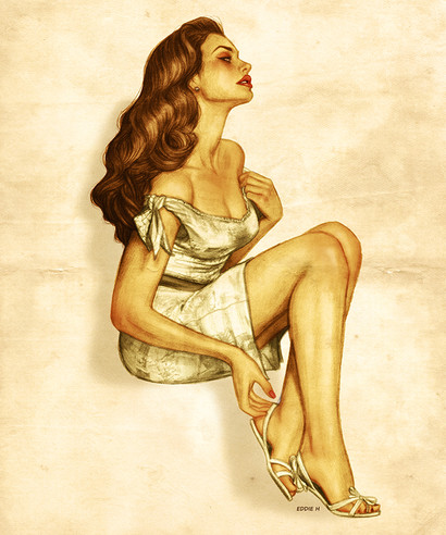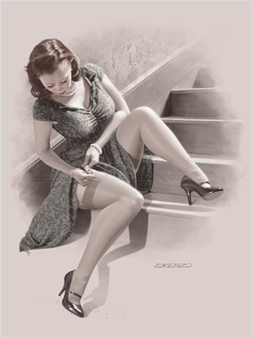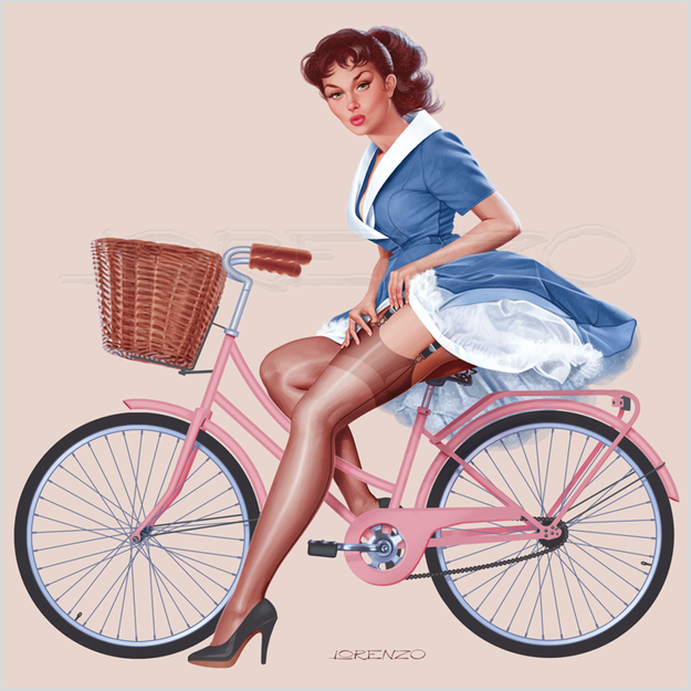 #bicycle #bike #blushing #cute #easter #retro #springtime #stockings #vintage #high_heels #season_greetings #lorenzo_di_mauro #lorenzo_pinup #silk_stockings #classic_pinup