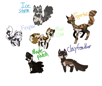 Please try to keep their names the same! suffixes can be changed from what's here if they don't fit by the time the apprentices are made warriors, but the prefixes were themed for the family