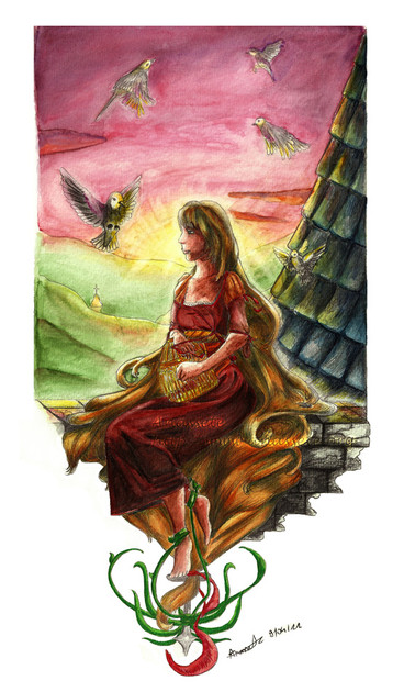 All she wanted was to leave her tower and fly away... To do more than just look outside at the world below.Part of my "bloody fairytale" series. ^.^