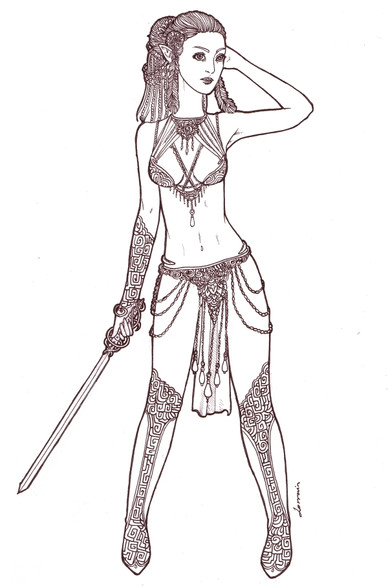 She's lovely. I like how clean this looks, despite you doing it with a pen in the middle of the night! Kudos and hats off to you. I love her long hair. It's not often you see a fallout OC with long hair. And the armour is so detailed, i really really like it.