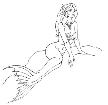 Wreszcie ktoś narysował syrenę z rzeczywiście rybim ogonem (i to do tego z symetrycznym, czyli takim pierwotnym ewolucyjnie) - zazwyczaj rysuje się je z bardziej wyglądającymi na ssacze niż rybie.