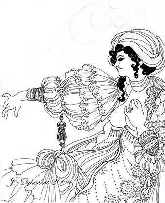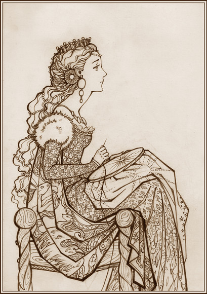 Cool! I love the intricate patterning and the way the cloth of her dress folds.