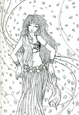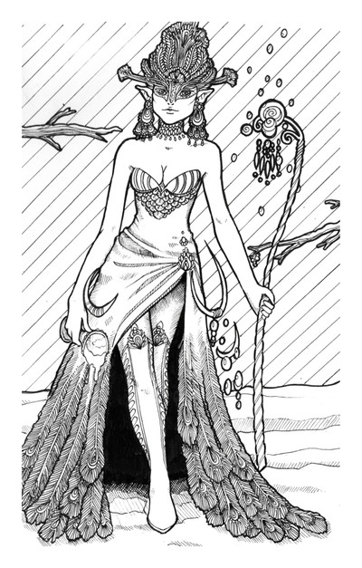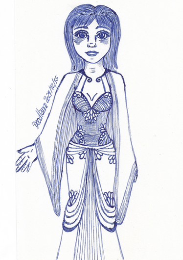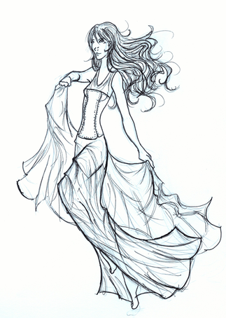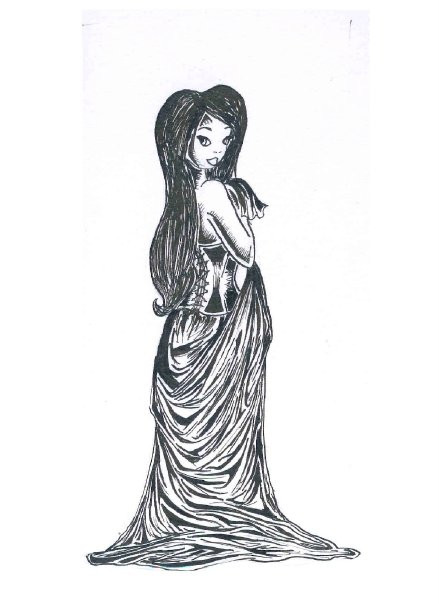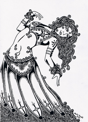 That amount of details would probably have killed my hand, and me afterwards. I am always admiring you for your patience to draw pictures like this one. The pose itself is not very hard to draw but all those complex and intricate pattern-designs on her dress...