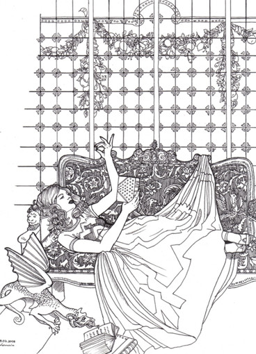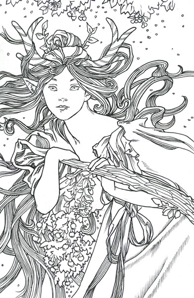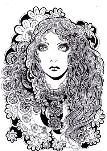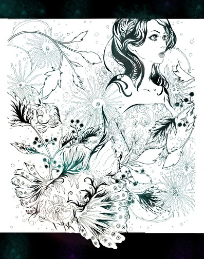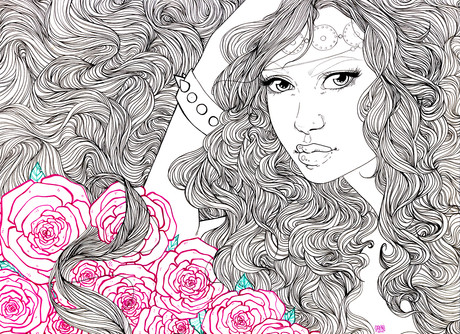 I really love how the style you're working in puts super dense line-work (like in the hair and clothing) right next to the big open forms of her face and body. You make it work so well. Keep it up! & thanks for posting!