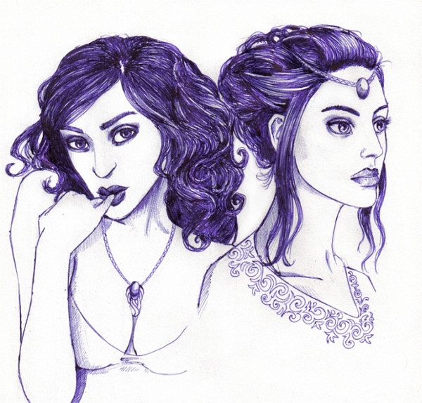 black ballpoint and white pencil on red paperreference [link] by ~toyan