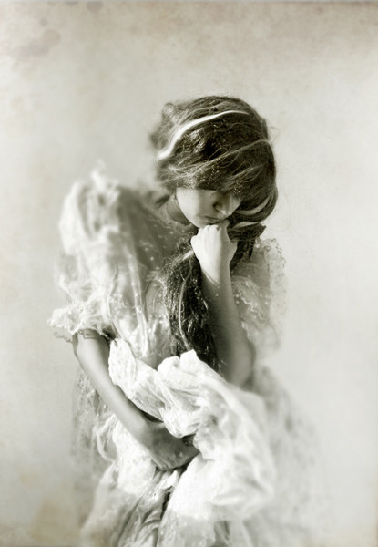 That skirt is so amazing! There's something angelic about the fabric it's made of... the whole picture has a really antique feel to it... somehow it makes me connect it with something that happened in the Victorian era... there's a hopeless feeling in her...