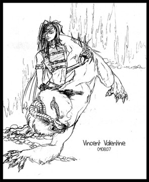 Personaly I think that the thumbnail is better than the full sized version 'cos then you can't see the lack of detail ^^. Also, not all that is saliva, only some, she was drinking when who ever it was angered her...