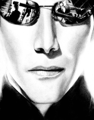 Carrie Anne Moss aka Trinity from the Matrix trilogy - one of my favorite movies ever.- Original handmade drawing,