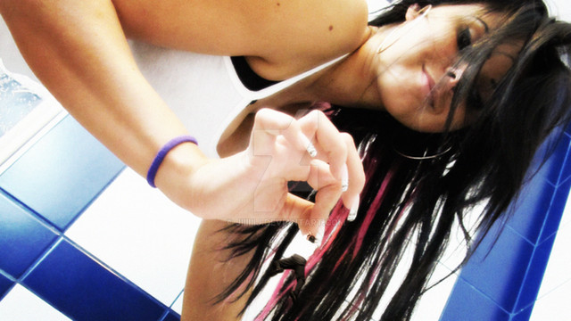 Very cool angle. The contrast between the stark smoothness of your skin and the belt contrast harshly with the textured bra...the only thing I wish more of was to see your face within the photo. To give it more of a "you..." just feels too cut off now