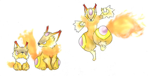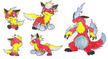 I'm going to start writing my own fake Pokemon story on my other account, unfortunately i can't draw very well. I was wondering if you wouldn't mind letting me use your design for the fire starter pokemon in my story?