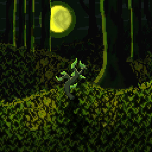 Bright clearing in a dark forest, maybe a sign of hope? 22 colors.Related content