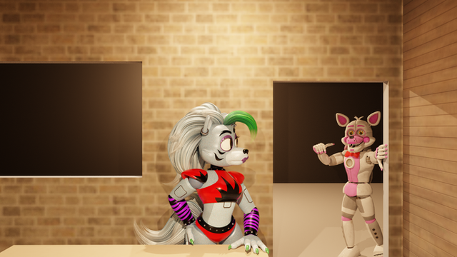 #alley #animation #ball #banter #black #cage #characters #chica #day #dialog #flattened #glamrock #glitchy #glowing #hellhound #loona #nature #pink #red #rough #roxy #scene #shape #sound #sunset #tf #urban #vortex #white #wolf