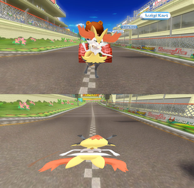 #pokemon #2023 #car #day #expressive #flattened #hellhound #loona #roller #rough #scene #tf #braixen #helphound #from_animation #stiff_flattened #squeezeflattened #partial_flattened