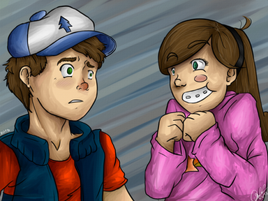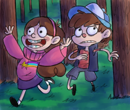 "if the pines twins ever do encounter a vampire i feel dipper may have a hard time convincing mabel to run from it."eyyy this is a redraw from one of my first pics i drew for gfalls back in 2012! its nice to see how far ive come since then im really proud of myself for keepin at this whole art biz. im gunna rant about how much i love gravity falls now