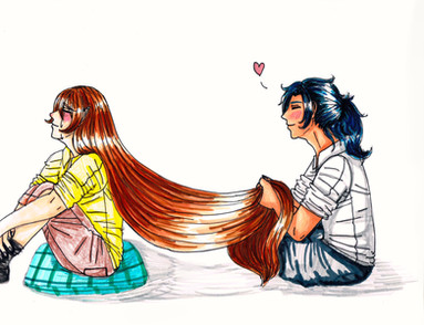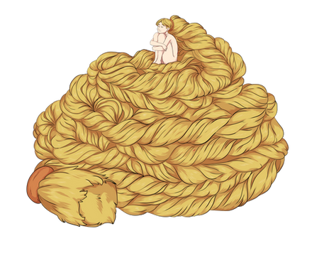 As she slowly recovered she was haunted by the brutal shearing she endured. She'd been around for a long time and not been so scared and alive feeling in centuries. So she was drawn to emulate those feelings of terror and fear and adrenaline. Heven intervened to scare her straight, but not long after she found herself in the company of Sam . Sam at first was more than happy to indulge Aurelia's need to relive the thrill and terror of a haircut by playfully snipping the end of a curl off here and there. At first to tease the poor thing, but eventually as she caught on and developed a soft spot for ol' goldilocks, she did it to satiate the fainn's urges in a safe limited way that would prevent her from doing something really stupid.