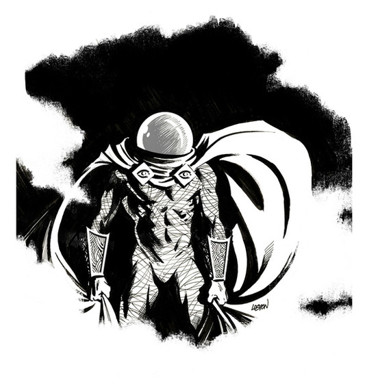 Thanks Andrew! I enjoyed doing something different with the cape in the drawing. Usually capes are always floating off to one side, but this seemed to work well with Mysterio. You never know if he just might pull a disappearing act by throwing his cape in front or something.