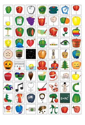 Allright, what I also like with this is the diversity of media used. I've spotted vectorapples, photo apples, manipulated apples, drawn apples... one can look at it quite a time before having looked at all of them and found what was used to draw them.