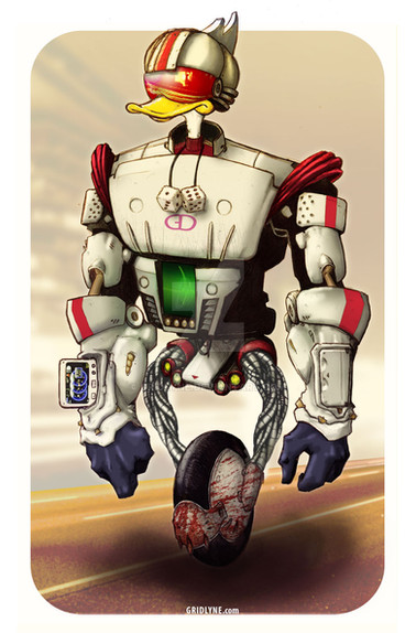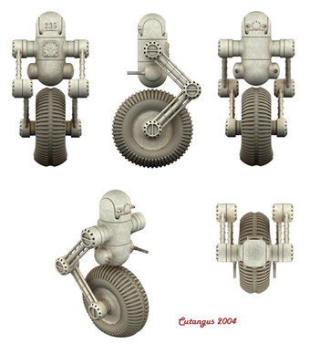 A robot (that I've yet to name) on a hover-board type... thing.Lightwave and Photoshop.
