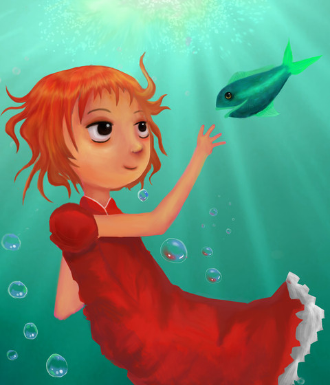 really cool, but i think it would be even cooler if she was reaching out at the bubbleΒ