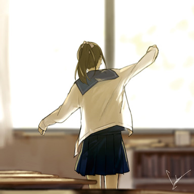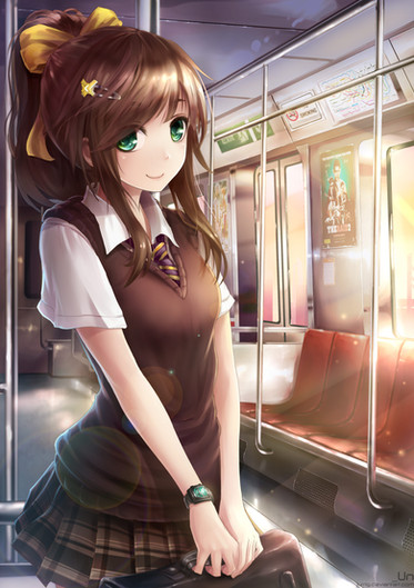 The colour palette of the illustration is charming, that along with the lighting turns a scene depicting something as trivial as waiting into something a lot more enchanting. As always, the girl is portrayed well, I like her outfit, her hair do and expression are also lovely.