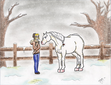 Following on from this fav.me/ddhir7gMiss King has bundled Gareth out of the stable where he was singing Welsh lullabies to Coral, and is having a sensible chat with the mother to be.