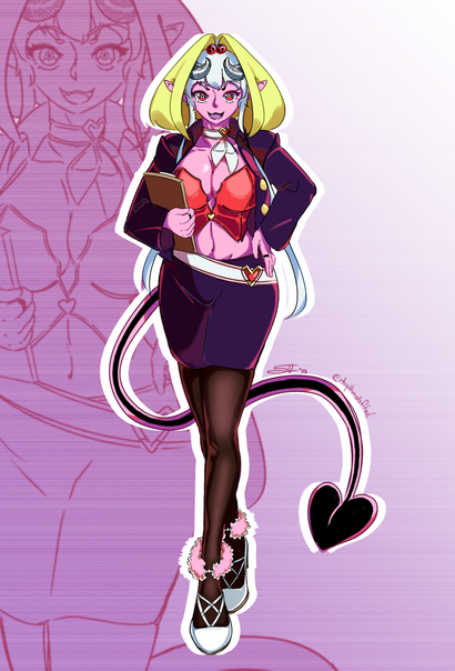 #artfight #blueskin #horns #pinup #redeyes #tiefling #yelloweyes #pinkskin #demon #demondevil #demoness #demongirl #demonic #demons #glassesgirl #officegirl #officelady #pinkhairgirl #pinupgirl #secretary #pinupsexy #tieflingfemale #artworkdigital #hornsgirl #secretarygirl #secretaryoutfit #artfightrevenge #secretaryuniform #artfight2022 #artfightteambloom