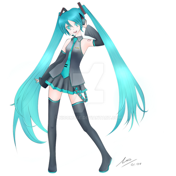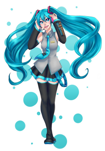 #beautiful #blueeyes #bluehair #commission #headphones #longhair #semireal #shirt #teal #turquoise #hatsunemiku #ironicworld #lovablepirate #frillskirt #boots #cute #fullbody #girlwoman #highheels #semirealism #simplebackground #standing