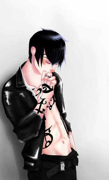#lucifer #oc #lovablepirate #blackhair #boyman #commission #hot #originalcharacter #scars #semirealistic #shirtless #simplebackground