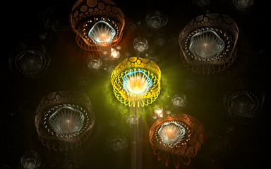 I made shapes in cool FREE flame-fractal program Chaoscope[link]