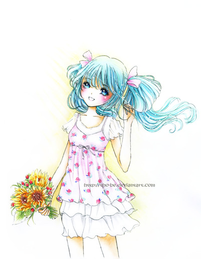 This is so cuuuute. X3 I love the coloring. Her dress is so adorable and I love the color of her hair. XD Great job on this!!