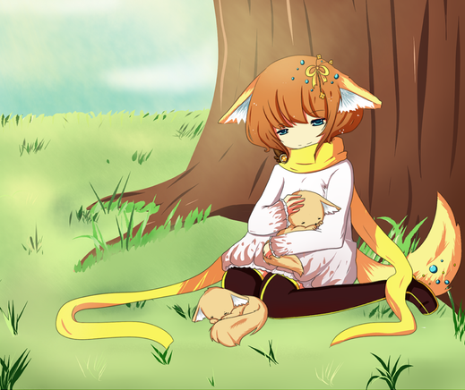 It looks like you painted it but it's digital, right? You did another really good job again!! ^^ And what's that animal she's petting? It's so cute!!! XD
