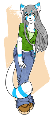 A drawing of Pup Di, I was shopping for clothes today and saw this bright blue pants and open shoulder shirt and had to take itEnjoy!