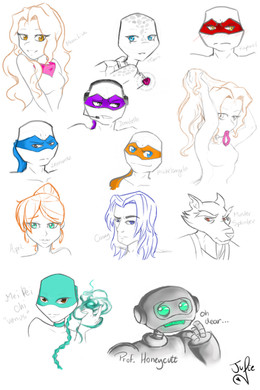 Mientras hacia mi tarea, me puse a pensar ¿cómo se verían Leo, Rafa Donnie y Mikey si fueran humanos? y bueno, después de unos cuantos bocetos, esto me salióTMNT 2012: Nickelodeon, Kevin Eastman y Peter Laird