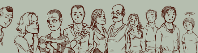Group shots are always crazy hard, since you have to deal with accurate proportions and good composition x1000. Looks awesome so far, I'm sure the colour version will be great!