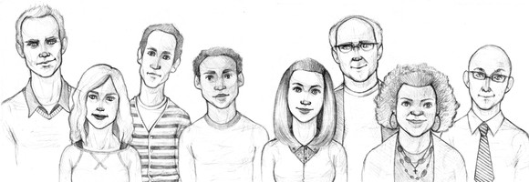 what i love about this is that your style is totally NOT realism- but each of your caricatures totally evokes the actor. I think your Pierce, Jeff, and Abed ones are most accurate.