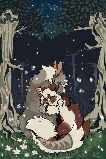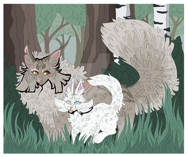 Day 6Pixel attempt, it needed to be smoller. Anyway we got Riverwind and Rabbitthorn. Rabbit is Frogbog's half sister and the result of Thornface's affair. Briarshadow absolutely hates her and of course without saying her mother Mistymarsh. So by her influence she kept Rabbitthorn alienated from her half brothers who adored their mother and also knew better than to get on her bad side when it came to, anything. Like they were PISSED at their father but had to bite their tongues on that one since Briar decided they were going to keep playing at married life despite it being an obviously toxic situation for everyone involved. Anyway, for the first couple years of her life Rabbitthorn didn't have a lot of relationships on account of being on Briar's hit list and again, terrifying woman. No one wanted to get on her bad side. But when Riverwind joined the family Rabbitthorn reached out and was a big help to River during her time in the nursery. Normally Briar would have done everything to speak to Rabbitthorn having poor character and to stay away from her, but she was trying to look good for her daughter in law and Riverwind had mentioned to Frogbog it was nice how his family was actually, helpful and kind, a big difference compared to her own. Also having been recently disowned, she probably wouldn't like to hear about just how badly Briarshadow treated Rabbitthorn. Metting Riverwind kind of opened Frogbog's eyes to that and River didn't really have friends so, he wanted that for her. Rabbitthorn eventually did become her closest friend, she was there for her when Briarkit died and she mentored Icejaw at River's request. Rabbitthorn blames herself for Toadpaw's death but because of her grief Riverwind never really got around to correcting her on that, but they did stay close friends. Rabbit would of done anything for Riverwind and she was the last cat to see her alive, which is another thing she blames herself for, not being able to save her.