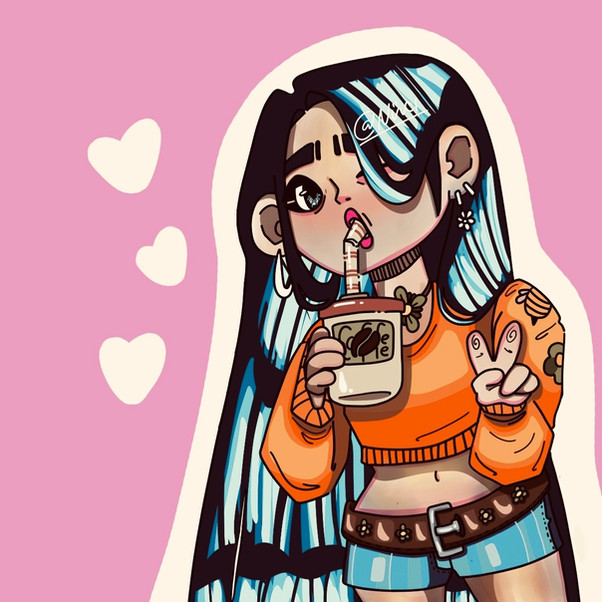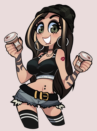 MY NEW OC !! HER NAME IS TESSAShes super sweet, she works at a coffee shop she LOVES COFFEE and girls... she’d help every old person cross the street and sneak kids free snacks from behind the shop counter. shes very VERY social and friends with everyone she meets, people always assume she’s tough and mean but shes the total opposite! loves to laugh and do her best.