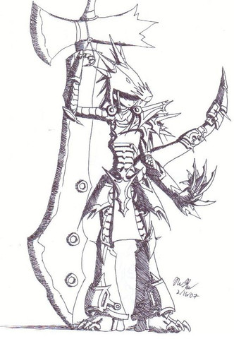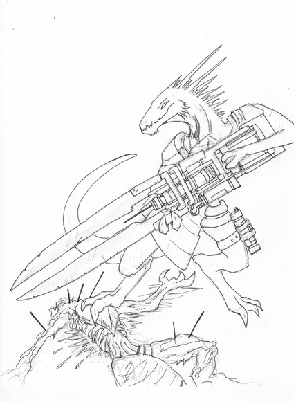 This must be one of the stranger requests I have ever had. A friend asked to to draw, and I quote; "The spacebabe Stith in armour and holding a big railgun." It didn´t sound very interesting to me untill I saw some pictures of how Stith looked. What a lovely strange creature, I might have to see the film she is in; Titan AE. I was expecting some boring stereotype supermodel babe but this is much more fun to draw.Anyway, constructive critique is very much apreciated before I colour this.